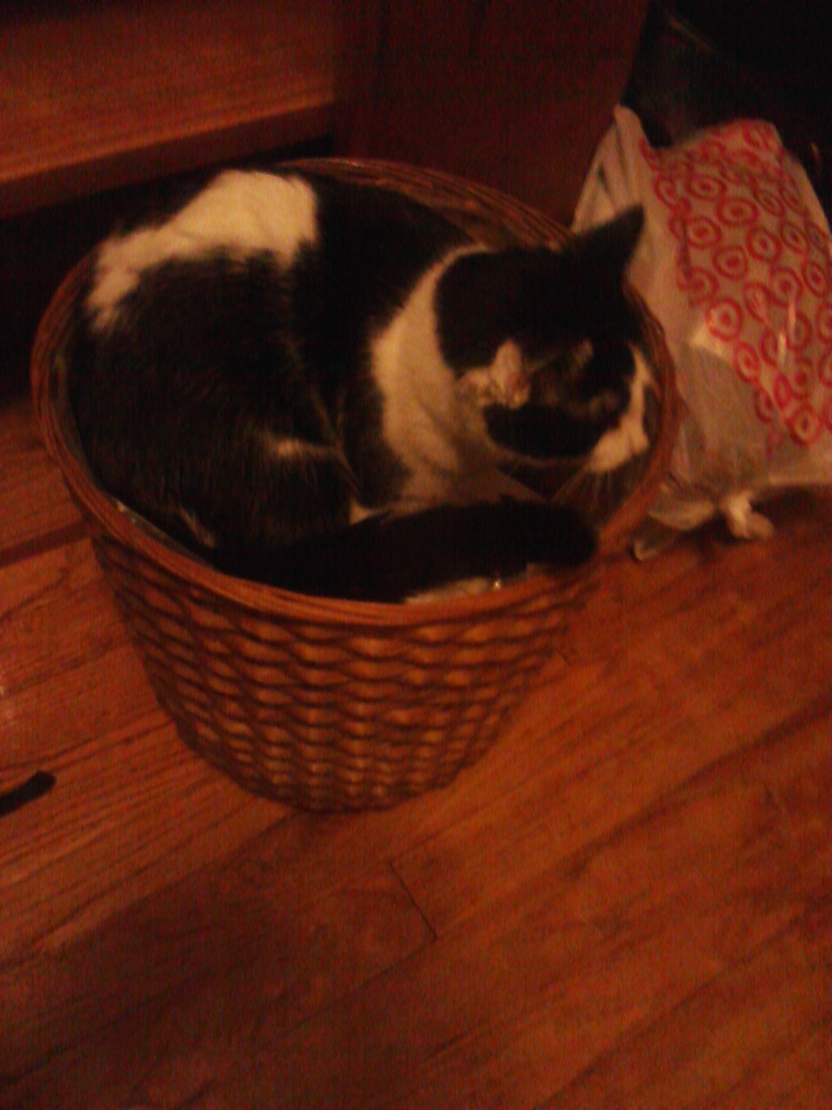 | Bella had and "accident" in a waste basket. I thought she was cute curling up in it at first (hence the picture)..but she is habitually naughty. |
